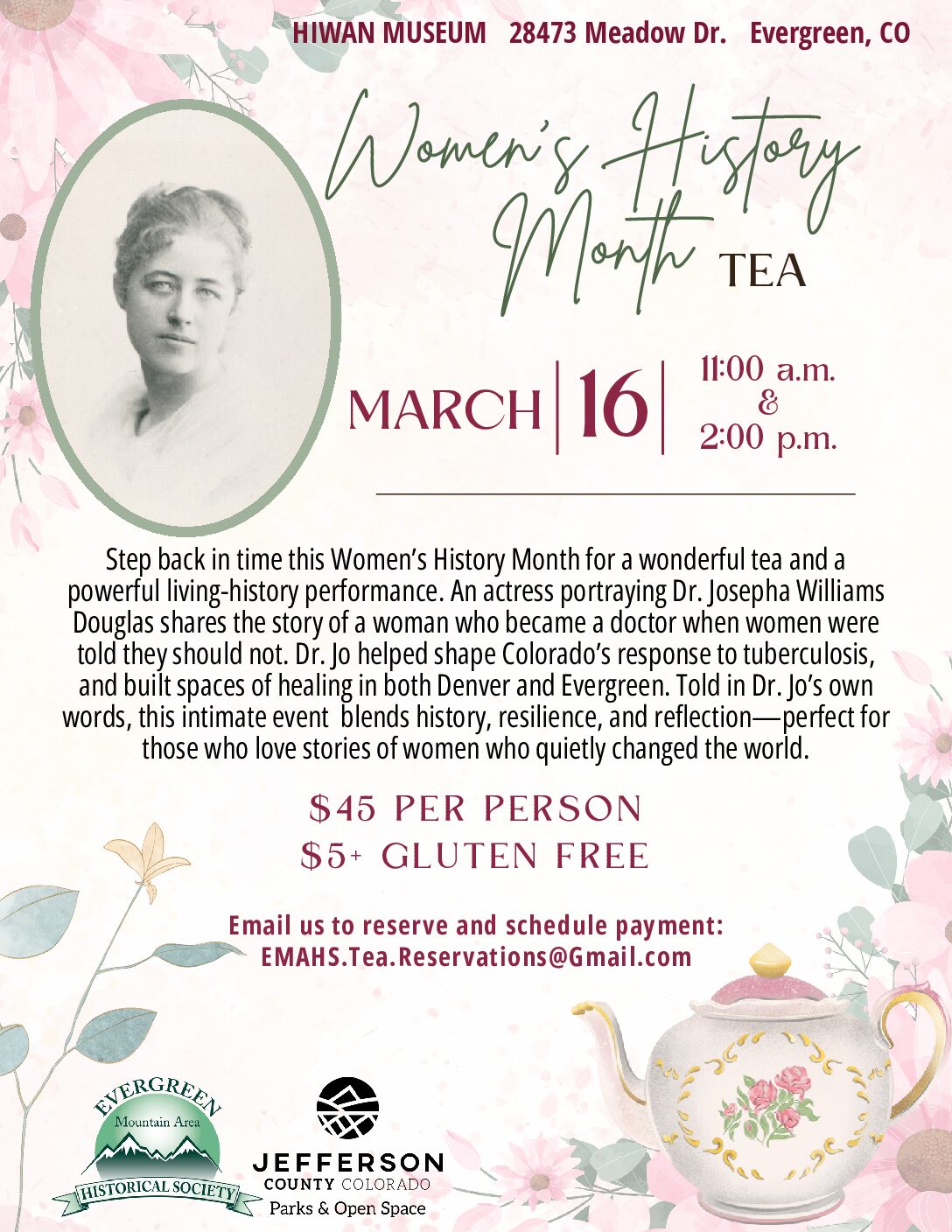 Founded in 1973, Evergreen Mountain Area Historical Society's (EMAHS) first major effort was to successfully persuade Jefferson County Open Space (JCOS) to purchase the structures now known as Hiwan Homestead Museum. JCOS and EMAHS currently maintain a cooperative relationship that preserves the historical structures while serving to display and interpret EMAHS's local Colorado collection.